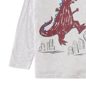 DMITRY LONG SLEEVES T-SHIRT MELANGE WITH DINO SMASH PRINT