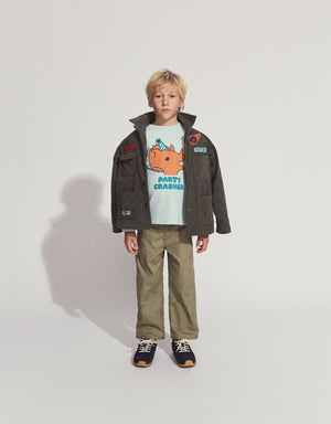 You little adventurer can surely crush it with our Dmitry Long Sleeves T-Shirt in Mist, featuring our wild Dino Crash print!