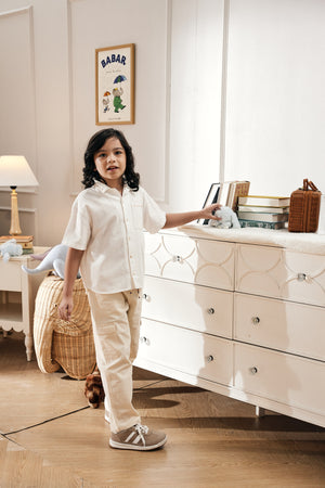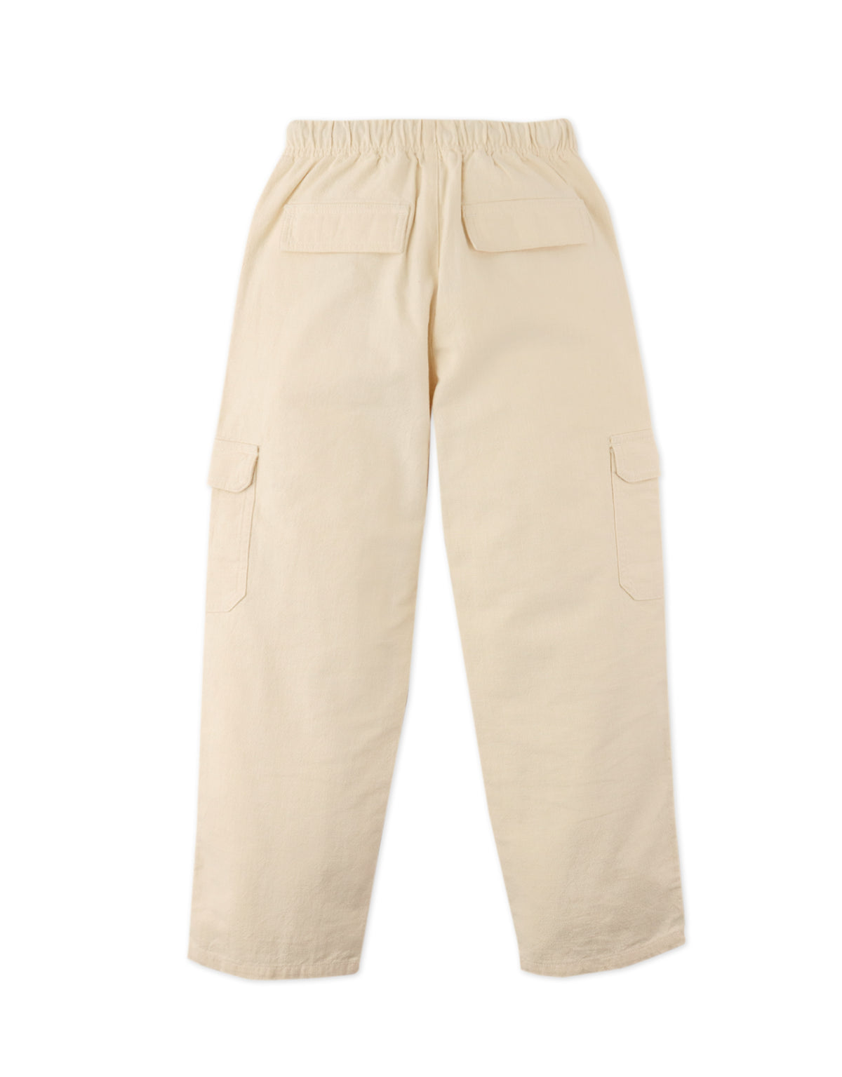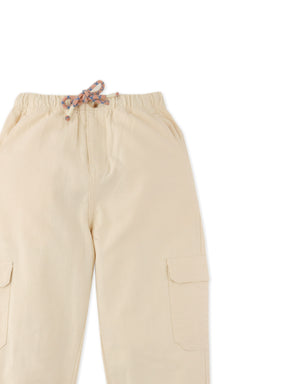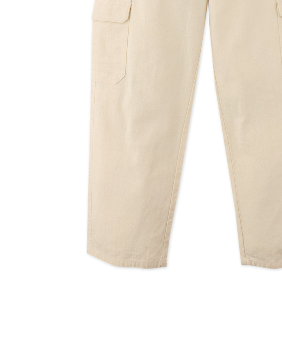 Designed with a tapered silhouette, drawstring waist, and functional cargo pockets, these off-white cotton linen pants bring effortless style and utility together.