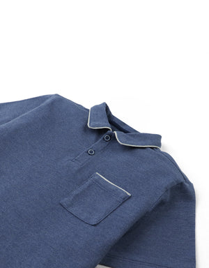 Keep looking sharp and feeling comfy in this blue cotton knit polo, designed with sleek piping and a refined finish.