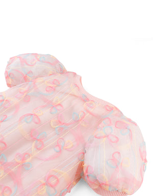 Infuse her day with soft charm through the Puff Sleeves Tulle Dress with Scribble Embroidery. This darling piece shines with every twirl and whispered laugh.