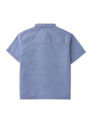 Embrace playful sophistication with our Elio soft denim shirt embroidered with lion and hoop details, for the added quirky circus motif.