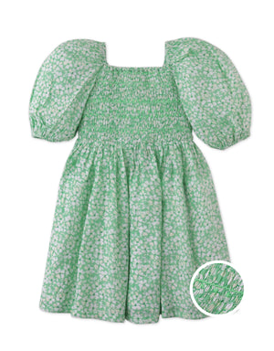 Dress her in charm with our lush green Emilia dress with hand-smocked bodice, fit for a flower princess ready to reign in style.
