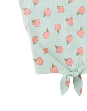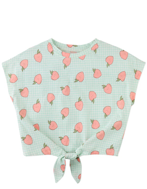 Fit your little princess in this all-over print tee, available in peach and gingham or leaf print, with a fun front tie that adds an extra touch of flair.