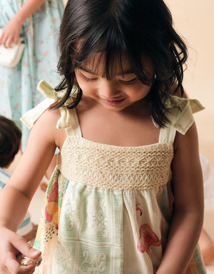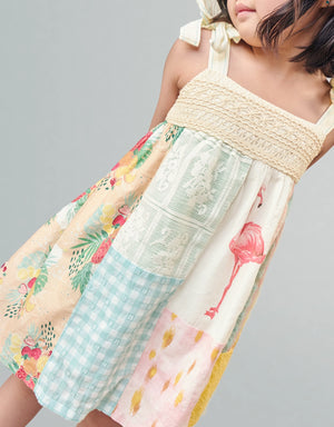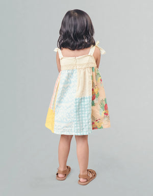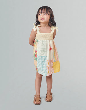 FRANKIE PATCHWORK BABY DOLL DRESS WITH COTTON TIE STRAPS