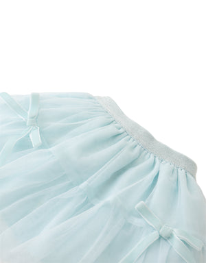 This tiered tulle skirt is like a little cloud of magic. Adorned with charming bows, it flutters with her every move, making everyday dress-up feel like a fairytale moment.