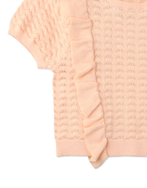 Your little retro star will shine during playtime with this ruffle pointelle blouse in the sweetest pink color!