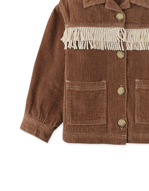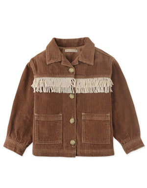 GIRLS CORD JACKET WITH COLLAR AND CONTRAST FRINGES