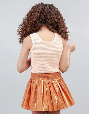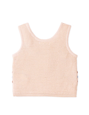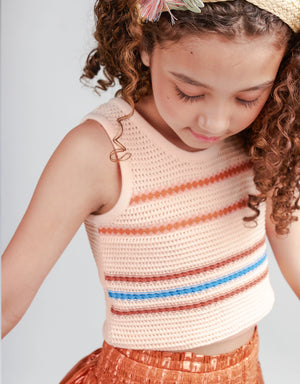 GIRLS CROCHET KNITED LIKE TANK TOP WITH MULTICOLOR KNIT DETAILS