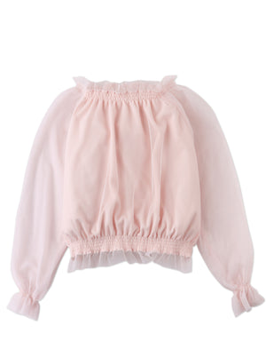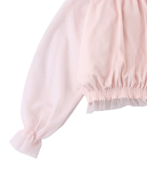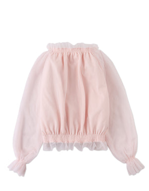 She'll float through her day in this pink tulle blouse with long sleeves, bringing a hint of dreamy elegance to any outfit.