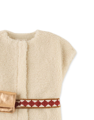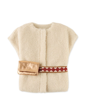 GIRLS FAUX SHEARLING GILET WITH FAUX LEATHER BELT BAG