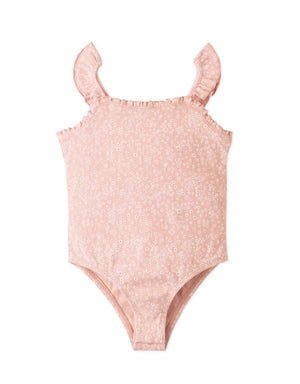 GIRLS FLORAL DITSY PRINT RIBBED BUTTERFLY SLEEVES BODYSUIT