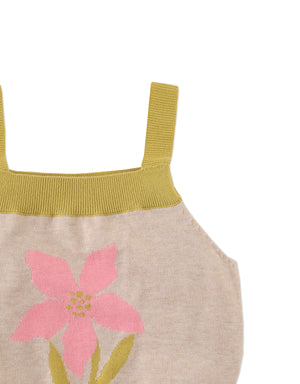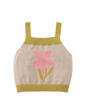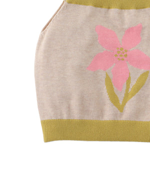 GIRLS FLORAL INTARSIA KNITTED TANK TOP ON MELANGE KNIT