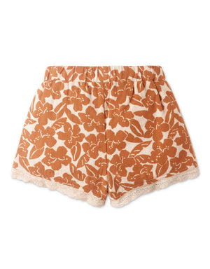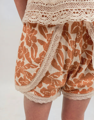 GIRLS FLORAL PRINT SHORTS WITH LACE TRIMS