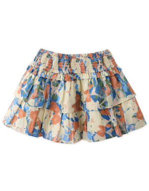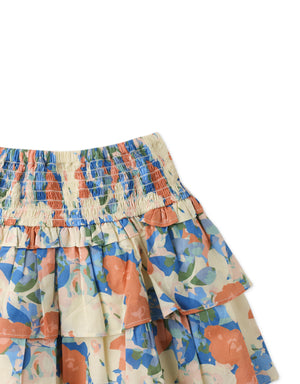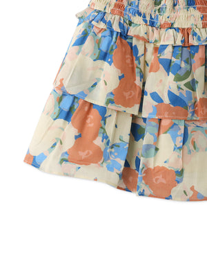 GIRLS FLORAL PRINT TIERED SKIRT WITH SMOCKED YOKE