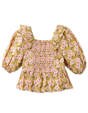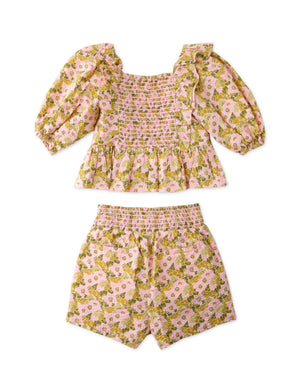 GIRLS FLORAL SMOCKED TOP AND SHORTS SET