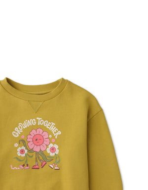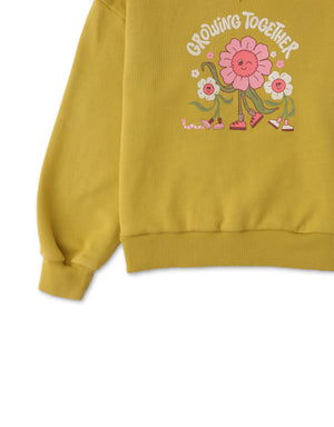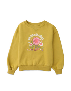 Keep her cute and cozy with this oversized pullover, embellished with an adorable "growing together" print!