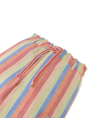 The Iris stripey pants feature a vibrant mix of colors, adding a playful touch to her wardrobe. Made with comfy, breathable fabric, they're perfect for all her adventures.