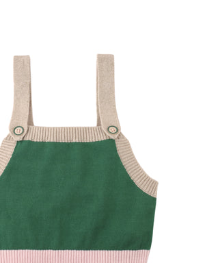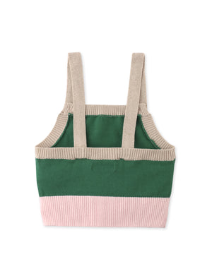 Vibrant green color-block knitted tank top for your little girl, made from soft combed cotton, adds a playful pop to any outfit with its stylish design.