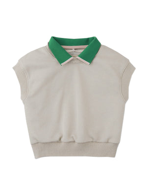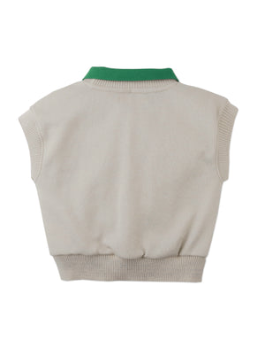 Made from soft French terry knit, this vest stands out with its lurex accents, contrast collar, and playful graphic print.