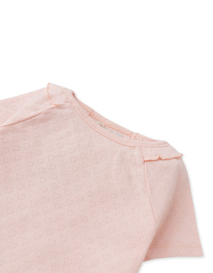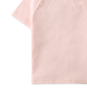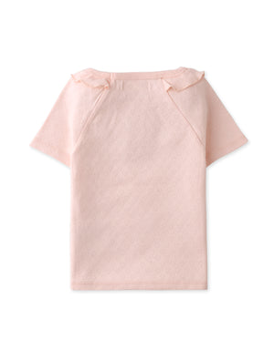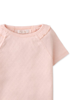 The ruffle detailing on the collar adds a sweet, playful vibe to this pointelle short-sleeve raglan top.