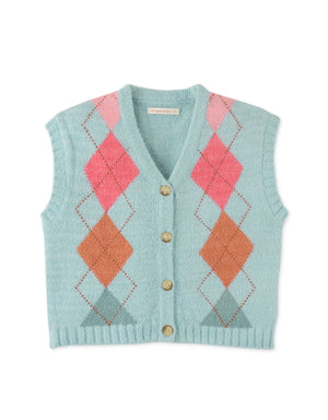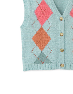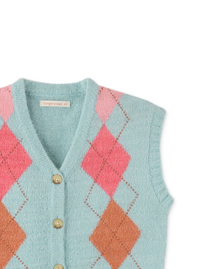 GIRLS KNITTED ARGYLE OVERSIZED VEST
