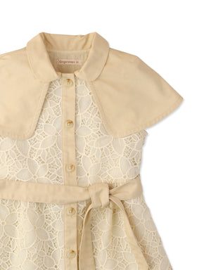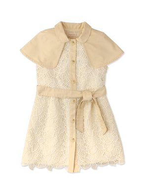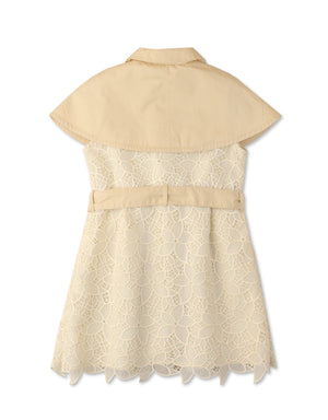 GIRLS LACE COAT DRESS WITH CAPE AND SASH