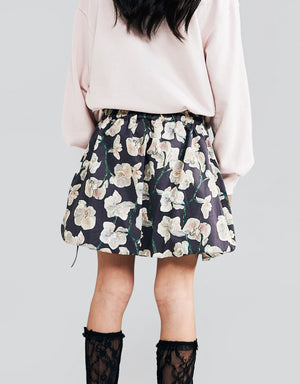 Let her bloom in style with this orchid-printed bubble skirt, adding a garden of floral flair to her wardrobe.