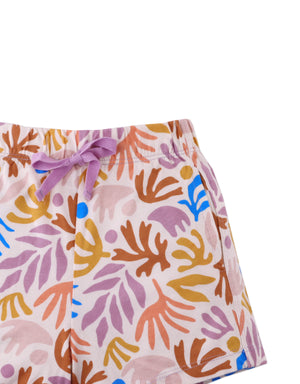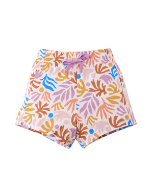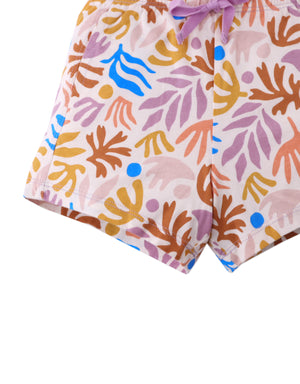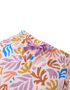 GIRLS LEAF PRINT PULLON SHORTS WITH CONTRAST TIES
