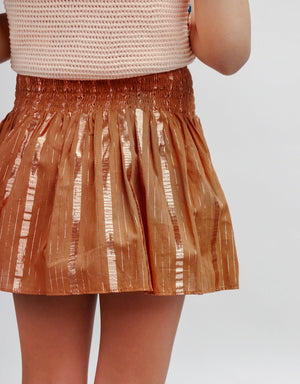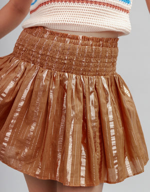 GIRLS LUREX STRIPEY SKIRT WITH SMOCKED YOKE