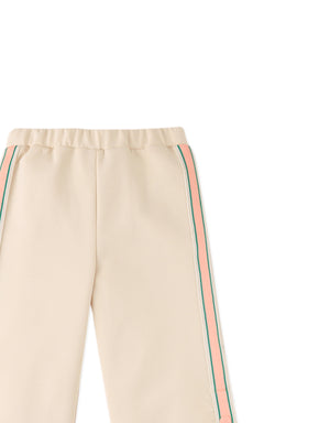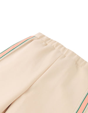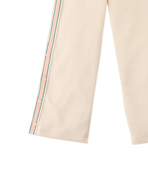 These popper pants in beige jersey nylon are enhanced with sporty side stripes and adjustable straps for a modern twist.