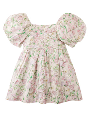Let her blossom in style with this floral printed dress, featuring playful bubble sleeves for a look that’s in full bloom.