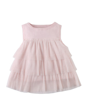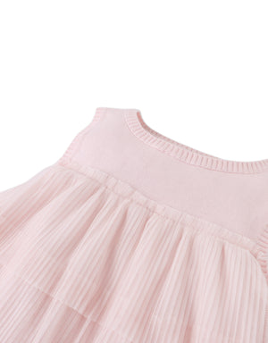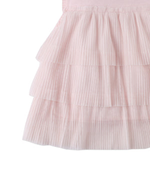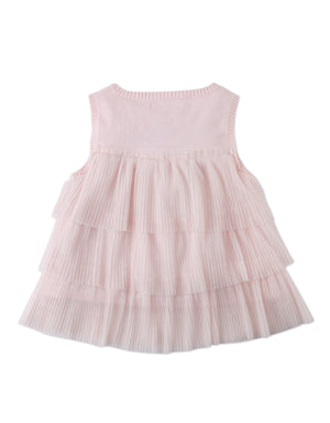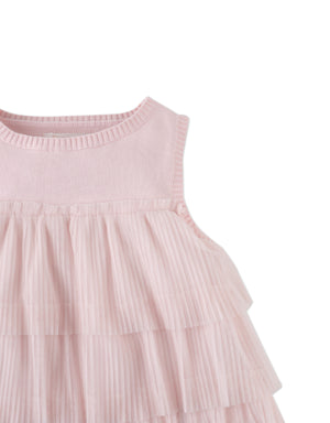 Add a dash of elegance to her wardrobe with this pink top, featuring a tiered tulle bodice and a white corsage that makes every outfit bloom.