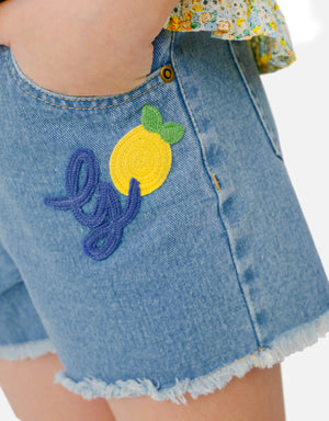 GIRLS PATCH POCKET SHORTS WITH EMBROIDERY