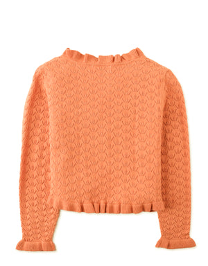 GIRLS POINTELLE CARDI WITH PETAL COLLAR