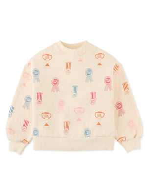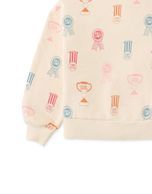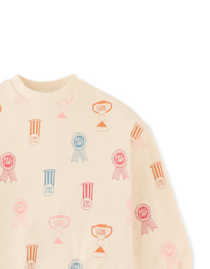 GIRLS PRINTED FLEECE PULLOVER WITH RIBBING COMBI