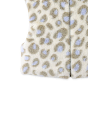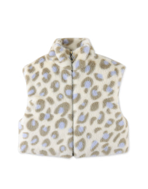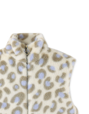 GIRLS PRINTED FUR VEST WITH WITH ZIP UP STAND COLLAR