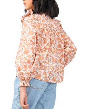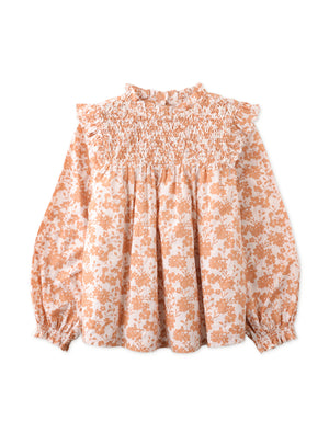 Dive into floral elegance with this printed long-sleeve top with an adorable diamond-smocked yoke!