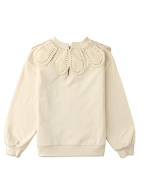 Feel like a flower princess in this french terry pullover with an enchanting petal-shaped collar!