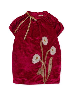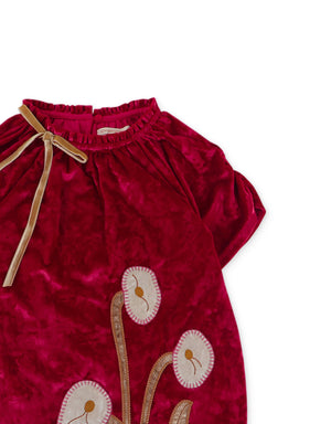 GIRLS RAGLAN VELVET DRESS WITH RIBBON ON NECK