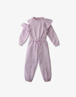 GIRLS RUFFLE CUT-OUT SWEATER JUMPSUIT