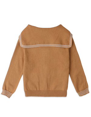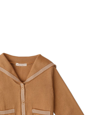 Dive into comfort with this sailor-collared knit cardigan adorned with the most delightful trims and pockets!