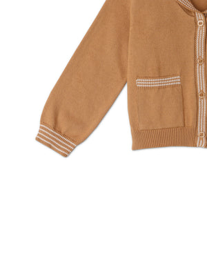 GIRLS SAILOR COLLAR CARDI WITH STRIPEY DETAILING