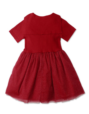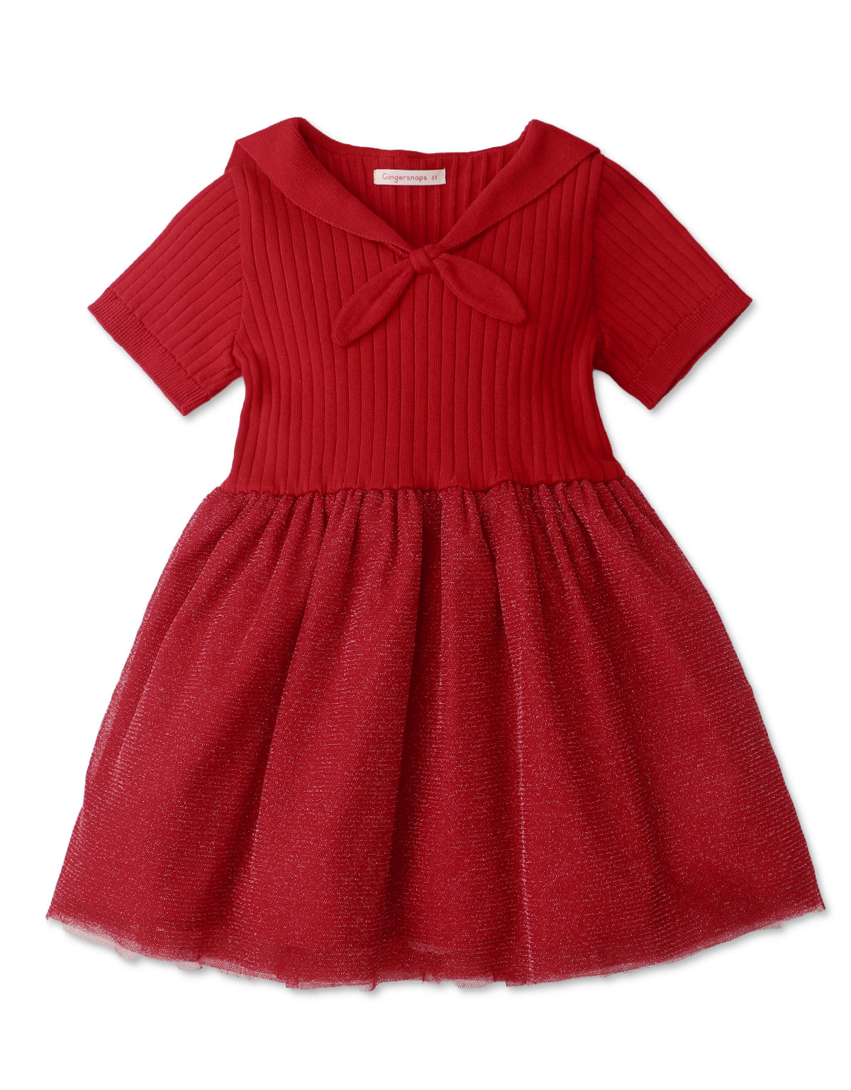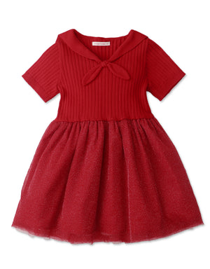GIRLS SAILOR COLLAR KNITTED AND TULLE DRESS