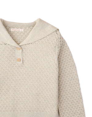 GIRLS SAILOR COLLAR POINTELLE KNIT LONG SLEEVES TOP
