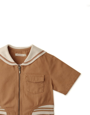 Our canvas jumpsuit with the cutest sailor collar will keep you looking fresh throughout playtime.