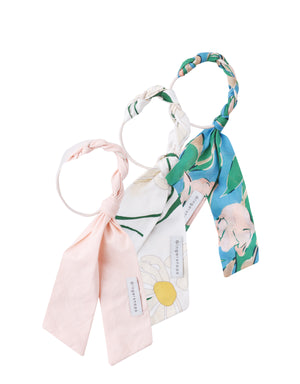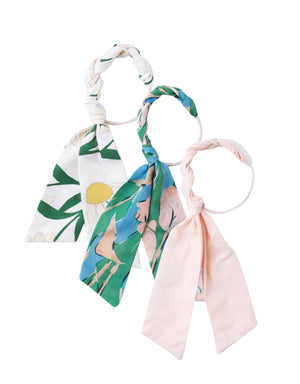 - Scrunchie 1 & 2: 100% Cotton, Scrunchie 3: 55% Cotton, 42% Nylon, 3%Elastane
