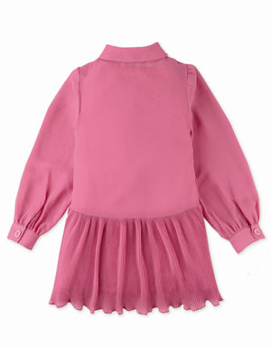 GIRLS SMOCKED DRESS WITH ELECTRIC PLEATED SKIRT DETAIL