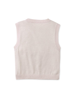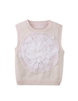 Let her bloom in style with this pink knitted vest, featuring a flower on the bodice that adds a petal-perfect touch to her look.