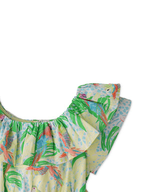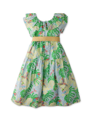 GIRLS TROPICAL PRINT MAXI DRESS WITH RAFFIA BELT